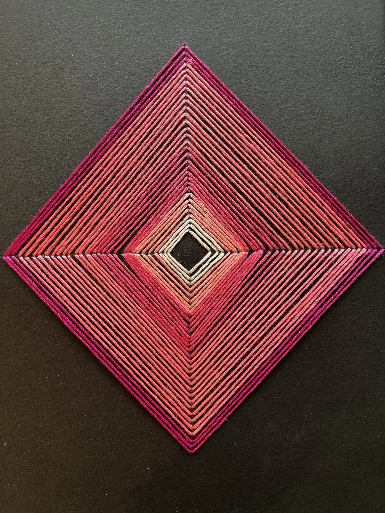 My artworks are created with the intention of evoking peace, harmony, and balance. Every stitch is made mindfully, often accompanied by a silent mantra, allowing the process itself to become a form of meditation. The patterns, lines, and shapes emerge intuitively, while colour combinations are inspired by moments in nature or arise from “no-thinking” watercolour explorations.